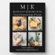 Moderne Minimalistische Business Countertop oder Tabletop Business Product Tabletop Sign Plaque mit 4 Fotos. Schwarz & Weiß oder wählen Sie Ihre eigenen Farben. Ideal für Einzelhändler, kleine Geschäfte, kleine Kioske, Messen und Events, Gastfreundschaft, Salons, Wellness-Center, Bäckereien, Cafés, Restaurants, Bars und vieles mehr. Einfach mit Ihren Monogramm-Initialen, Firmennamen und Informationen, Fotos, Slogan oder sogar mit Ihrem Logo oder persönlichem Markendesign personalisieren.