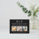 Moderne Minimalistische Visitenkarte mit 3 Fotos. Schwarz & Weiß oder wählen Sie Ihre eigenen Farben. Ideal für kleine Unternehmen, Firmenmarken, Selbstständige, Online-Verkäufer und vieles mehr. Einfach mit Ihren Monogramm-Initialen, Firmennamen und Informationen, Jobtitel, Slogan oder sogar mit Ihrem Logo oder persönlichem Markendesign personalisieren.