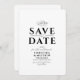 Eine minimalistische Schwarz-Weiß-Save the Date-Karte ohne Bild und eine von Grünhand gezeichnete Abbildung mit einer Kombination aus fett- und Script-Schriftart für schicken Look, auf der Rückseite ein Monogramm und QR-Code für Ihre Website oder Registrierung. Wenn Sie passende Stücke, die nicht in der Sammlung sind, bitte lass mir wissen (Maria) Happy zu helfen!