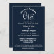 Diese elegante Hochzeitseinladung von Navy Blue und White ist ein Wecker mit extravaganten, weißen Schriftzeichen mit zwei Linien. Machen Sie Ihre Ankündigung Ihres großen Tages mit Familie und Freunden im Stil. Mit dieser klassischen Hochzeitseinladung kannst du nicht falsch liegen.