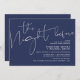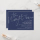Minimalistisches Navy-Script-Hochzeitsessen Probe Einladung