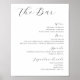 Dieses minimalistische moderne Hochzeitsgetränk Bar-Poster ist perfekt für jede Hochzeit! Auf dem Poster finden Sie alle Getränke und Speisen, die Sie für Ihren großen Tag benötigen. Außerdem ist es einfach, sich mit Ihrem eigenen Logo oder Text anzupassen. Warum also warten? Bestellen Sie noch heute Ihr Poster!
