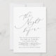 Eleganter minimalistischer Modernismus in der Nacht vor dem Drehbuch-Design mit zeitlosen Serif-Schriftart in Schwarz-Weiß, einfach und sauber. Große Probe-Dinner Einladungen für romantische minimalistische Hochzeit, moderne klassische Hochzeit, einfache Luxus Hochzeit.