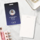Einfaches, stilvolles Abzeichen mit Personalausweis, das mit dem ID-Foto, dem Namen, der Titelrolle oder der Position Ihres Mitarbeiters, dem Firmenlogo, den Geschäftsdetails und QR-Code oder Strichcode personalisiert werden kann. Das stilvolle Design besticht durch moderne minimalistische Typografie.