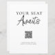 Verbinden Sie Innovation mit Eleganz mit unserem QR-Code-Zeichen für Sitzplätze. Dieses in Schwarz und Weiß gehaltene Schild bietet eine technisch versierte und stilvolle Art, die Gäste zu ihren Sitzplätzen am Brautparty zu führen.