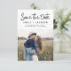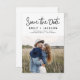 Modernes und elegantes handgeschriebenes Skript-Foto Save the Date Hochzeitskarte. Die Save the Date einladende Einladungskarte beinhaltet eine schicke und stilvolle Typografie mit einem einfachen und minimalistischen Design auf weißem Hintergrund, mit dem Sie Ihre individuelle Verlobung-Fotografie hinzufügen können.