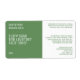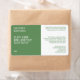 ein einfaches, minimalistisches Schönheitslabel in Grün und Weiß. Enthält Bereiche für Gebrauchsanweisungen, Inhaltsstoffe und Ihre Kontaktinformationen.