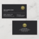 Auf der Rückseite, in einem ähnlichen schwarzen Cover, sind die Details in der Mitte mit dem goldenen Logo oben, gefolgt von Kontaktinformationen und einem Slogan, um Ihre Dienste zu werben.
