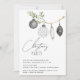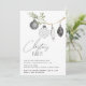 Diese minimalistische Weihnachtsfeier-Party Einladung bietet einen Aquarellzweig, lustige gemusterte Ornamente und Kalligrafiebetext. Die Rückseite ist ein Aquarell Schwarz-Weiß-Büffel kariert.