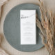 Dieses Brautparty-Menü mit minimalem Design ist perfekt für ein klassisch elegantes Hen Party. In dieser Kollektion sind auch passende Einladungen, Gehäusekarten und Schilder erhältlich.
