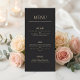 Erstellen Sie eine auffällige Präsentation für das Essen mit diesem minimalistischen schwarzen Restaurant- oder Hochzeitsmenü. Mit einem tiefschwarzen Hintergrund und sauberer minimalistischen Typografie vermittelt dieses Design eine luxuriöse, moderne und anspruchsvolle Atmosphäre. Perfekt für Restaurants mit gehobener Küche, Cafés, Hochzeiten, formelle Veranstaltungen und Premium-Catering-Services. Es hält die Menüpunkte leicht lesbar und bewahrt gleichzeitig eine hochwertige Ästhetik. Vollständig anpassbar mit Ihren Gerichten, Beschreibungen und Preisen, ist dieses elegante Menü ideal, um ein unvergessliches und stilvolles Essenerlebnis für Ihre Gäste zu schaffen.