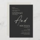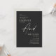 Diese 5" x 7" feierlichen Einladungen zeichnen sich durch ein minimalistisches Design aus, mit Elfenbein-Schrift auf schwarzem Hintergrund mit folgenden Platzhaltern, Ehrenzeichen, Elternnamen, Einführung, Ehepaar mit Vor- und Nachnamen, Wochentag, Datum, Uhrzeit, Veranstaltungsort, Anschrift und Empfang.