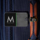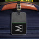 Mattes schwarzes und schwarzes Leder aus Kiesel, geteilt durch den dünnen, grünen Streifen aus Kalk, schaffen ein schicke, minimalistisches Gepäckstück. Eine moderne große Initialeinheit liegt über dem Namen der Person. Ihre persönlichen Daten werden auf der Rückseite platziert. Schick und stilvoll. Geeignet für Privat- und Geschäftsreisen.