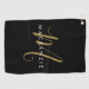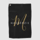 Minimalistisches Schwarz und Gold Script Monogram Golf Handtuch.