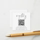 Möchten Sie mehr Details zu Ihrer Einladung hinzufügen? Diese individuell anpassbare Einschließkarte verfügt über zwei benutzerdefinierte Textfelder, mit denen Sie wichtige Informationen an Ihre Gäste weitergeben können. Das Design bietet weiche schwarze Kalligraphieskripte und kursiv geschriebene Schriften. Passen Sie den Text an, und personalisieren Sie ihn, um ihn an Ihre Veranstaltungsfarben oder -themen anzupassen. Diese Registrierungseintrittskarte enthält einen anpassbaren QR-Code und Platz für Ihre url.