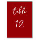 Helfen Sie Ihren Gästen mit dieser eleganten roten Tischkarte, ihre Sitzplätze zu finden. Die Buchstaben und Zahlen befinden sich in einem Skript-Schriftart.