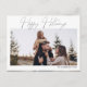 Minimalistisches Script Happy Holidays Foto Weihnachtsfeiertag Postcard Einfaches Foto Weihnachtspostkarte mit einem glücklichen Urlaub moderne Kalligraphie Titel, ein Foto, Familienname und Jahresdatum. Die Rückseite der Postkarte wird für die Familiennachricht, Adresse usw. vorbereitet. Ideal für jemanden, der moderne, minimalistische Foto Postkarten mag.