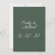 Eine einfache und elegante Einladung in Highland Green. Ihre Namen erscheinen in einem lebendigen Skript und Details erscheinen in einem zurückhaltenden und ausgeklügelten Serif-Schriftart. Auf der Rückseite sind Ihre Namen in einem vollfarbigen Hintergrund dargestellt. Für Herbstliebhaber überall.