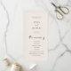 Minimalistisches Script Light Beige Hochzeitsprogramm. Fügen Sie Braut- und Bräutigam-Namen, Ihr Hochzeitstermin, den Ort und die Reihenfolge der Hochzeitsfeier auf der Vorderseite hinzu und fügen Sie die Namen der Hochzeit/des Brautparty auf der Rückseite hinzu.