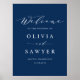 Minimalistisches Script Navy Blue Wedding Willkomm Poster