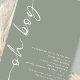 Minimalistisches Script Oh Boy Sage Baby Dusche. Verfügbar in digitaler Form oder gedruckt. Zeitgenössischer Stil mit Oh Boy rotiert und auf die links Seite und leicht personalisieren Sie die Erholung des Textes auf Ihre eigenen Details. Sie können Text- und Hintergrundfarben ändern, wenn Sie möchten, indem Sie die Option Weitere bearbeiten verwenden.