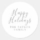 Diese minimalistisch silbernen Happy Holidays Geschenksticker sind perfekt für einen einfachen Urlaub Geschenk oder eine Urlaubskarte. Das Design zeichnet sich durch die klassische silbergraue und weiße Typografie aus, gepaart mit einem rustikalen und eleganten Script-Schriftart mit handgeschriebenem Stil. Personalisieren Sie die Aufkleber mit Ihrem Namen.