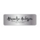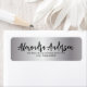 Trendy personalisierte Rücksendeaufkleber mit einem Imitat silbernen Hintergrund mit Ihrem Namen in einem modernen Skript geschrieben. Der Text ist vollständig anpassbar.