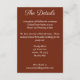 Diese "must-have" Detailkarte enthält den Titel in einem lebendigen Skript und Ihre Details in einem modernen Serif-Schriftart. Dies ist der perfekte Ort, um Unterkünfte und andere relevante Hochzeitsinformationen zu beachten. Auf der Rückseite finden Sie Ihr Hochzeitstag.
