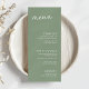 Machen Sie Ihr Brautparty zu einer schicken Angelegenheit mit dem Sage Minimalistisch Script Brautparty Menu, mit einem raffinierten modernen Skript-Schriftart, das schlichte Eleganz ausstrahlt. Die Gäste werden die schicke Einfachheit dieses Menüdesigns Liebe finden. Sein minimalistischer Stil verhindert, dass er überladen oder übermäßig fussig erscheint. Die Salbeifarbe verleiht eine subtile Touch der Persönlichkeit. Es ist das perfekte Menü für die moderne Braut, die ihre Dusche will, um sich frisch und zeitgemäß zu fühlen.