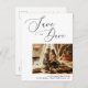 Minimalistisches Skript-Foto Hochzeit speichern Si Ankündigungspostkarte