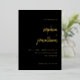 Diese eleganten, minimalistischen Einladungen in Goldfolie sind mit modernster Goldskripttypografie und sauberem Sans Serif-Text auf dunklem schwarzem Hintergrund für ein einfaches und stilvolles Design, das Sie Liebe.