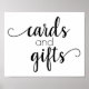 Einfache, schwarz-weiße, waagerechte "Cards & Gifts" Dusche, Party- oder Empfang-Tafelschilder mit einem lustigen, lässigen, handgeschriebenen Drehbuch. Das klassische Design beinhaltet ein modernes, handhabbares Offerttipografie-Overlay. Der hübsche Schriftart mit einer individuell anpassbaren Hintergrundfarbe macht es einfach, sich jedem Thema anzupassen. Für andere Farben oder passende Produkte, besuchen Sie bitte den JustFharryn Zazzle Store, oder kontaktieren Sie den Designer, c/o fharryn@yahoo.com Alle Rechte vorbehalten. #zazzlemade
