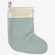Hinzu kommt eine moderne und elegante Touch in Ihrem Urlaubsdekor mit diesem minimalistischen personalisierten Strumpf. Dieser Strumpf ist mit einem weichen, gedämpften Salbei mit einer klassischen Creme-Manschette ausgestattet und mit einem zarten Skriptnamen versehen. Er ist der perfekte Sake für die Ferienzeit. Ein subtiles, aber festliches Design, das sich nahtlos mit modernen, skandinavischen oder neutralen Urlaubsthemen verbindet. Ideal für familiäre Weihnachts-Strümpfe oder als nachdenkliches personalisiertes Geschenk.