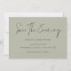 Minimalistisches Skript Pale Sage Green Rettete den Abend. Verfügbar in digitaler Form und gedruckt. Einfache Eleganz, um Ihren Abend Party Gäste zu senden. Rett Der Abend befindet sich in einem modernen Set-Skript.Die Erholung des Textes können Sie leicht personalisieren.Hier in schwarz auf weich hellgrün dargestellt, aber die Text- und Hintergrundfarben können geändert werden, wenn Sie über die weitere Option anpassen möchten.