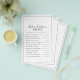 Dieses minimalistische Bräunungs- und Bräutigam-Trivialspiel ist perfekt für einen einfachen Polterabend. Das moderne romantische Design besticht durch klassische schwarz-weiße Typografie gepaart mit einer rustikalen und eleganten Kalligraphie mit Vintagem handgeschriebenem Stil. Anpassbar in jeder Farbe. Behalt das Design einfach und elegant, wie es ist, oder personalisiere es durch Hinzufügen von eigenen Grafiken und Kunstwerken. Personalisieren Sie die Rückseite der Karte mit dem Namen der Braut und dem Datum der Dusche.