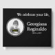 Dieses schlichte Bestattungs- oder Gedenkbuch enthält die Meldung "Wir feiern dein Leben", zusammen mit einem personalisierten Namen und den Geburtsdaten/Todesdaten. Es bietet auch Platz für ein personalisiertes Foto. Es könnte genutzt werden, um die Erinnerungen von jemandem aufzuzeichnen, der kürzlich weitergegeben wurde.
