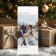 "Senden Sie mit dieser minimalistisch senkrechten Weihnachtsfotokarte Ihre Wünsche für einen warmen Urlaub stilvoll. Mit einem gepflegten Layout mit eleganter Typografie und einem hohen Portrait-Foto eignet sich diese Vorlage hervorragend für Hochzeitsfotos, Verlobungen oder Familienportraits. Eine zeitlose und moderne Art, Ihre Freude in dieser Ferienzeit mit den Lieben zu teilen."