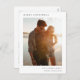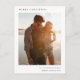 Eine stilvolle, minimalistische Foto-Urlaubspostkarte mit klassischer Typografie "Frohe Weihnachten" in Schwarz auf einem schlichten, minimalistisch-weißen Hintergrund. Das Foto, die Urlaubsstimmung und der Text lassen sich leicht für eine persönliche Touch anpassen. Ein einfaches, minimalistisches und zeitgenössisches Weihnachtsdesign, das sich in dieser Urlaubssaison auszeichnet! Das abgebildete Bild dient zur Veranschaulichung, um durch Ihr eigenes Foto ersetzt zu werden. Das Bild der Platzhalter zeigt ein paar Spaziergänge am Strand mit Sonnenuntergang.