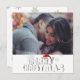 Personalisiertes Foto moderne Ferienkarte mit einer trendigen "Frohe Weihnachtsbotschaft" auf einem schlichten, minimalistisch weißen Hintergrund und graue Schneeflocken auf der Rückseite. Das Foto, die Urlaubsbotschaft und die Namen auf der Rückseite können für eine persönliche Touch leicht personalisiert werden. Das abgebildete Bild dient zur Veranschaulichung und wird durch Ihr Foto ersetzt. Freude und Wärme in dieser Urlaubssaison mit dieser Karte verteilen. Es ist perfekt, um Ihre Liebe zu Ihrem Liebsten zu schicken. Gute Ferien!