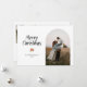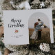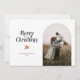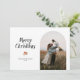 Minimale und saubere Weihnachtsfotokarte mit weißem Bogen-Rahmen mit Typografie-Text, der "fröhliche Weihnachten" mit einer einfachen Illustration roter Beeren sagt.