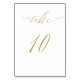 Diese minimalistisch weißen und goldenen Hochzeitskarten werden Ihrem Hochzeitsort eine Touch Eleganz verleihen. Dieses einfache Design-Template verfügt über ein modernes Imitat Gold Skript, das "Tabelle 10" lautet. Bitte Karo in unserem I Liebe Weddingz Shop für mehr Tischnummer Karten in diesem Set. Die besten Wünsche für Ihre Hochzeit und Ehe! Entworfen von Susan Coffey.