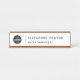 Eine einfache schwarz-weiße Schreibtischtafel mit Ihrem Firmenlogo, Mitarbeitername und beruflichem Titel. Bearbeiten Sie es einfach mit Ihren Informationen.