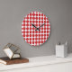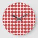 Niedliche und trendy Minipolka-Punkt-Wand-Uhr. Tupfen dieses Kreises der Ausrüstungsbeschreibungen kleine in Rotem und in weißem. Text kann diesem Entwurf hinzugefügt werden, um ihm eine persönliche Touch zu geben.