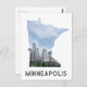 Jeder würde Liebe, diese Reise-Postkarte mit der Minneapolis, Minnesota Innenstadt Skyline in einer ausgeschnittenen Karte des Staat von Minnesota zu erhalten!