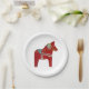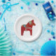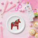 Dieses Minnesota Dala House Dinner Plate Design ist aus einem hölzernen Pferd geschnitzt und von Julia Persson-Morrill gemalt