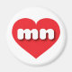 Dieser Magnet zeichnet sich durch ein lebendiges rotes Herz aus, das die fett-, weiß-, abgerundeten Kleinbuchstaben mn enthält, eine spielerische Abkürzung für Minnesota, den North Star Staat.