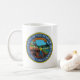 Das Siegel des großen Staat von Minnesota! Étoile du Nord bedeutet Star des Nordens. So wird die Symbolik erklärt: Die Sonne, die am Horizont des Westerns sichtbar ist, zeigt die flachen Ebenen, die einen Großteil Minnesotas bedecken. Die Indianer reiten nach Süden und repräsentieren das indische Erbe von Minnesota. Das indische Pferd, Speer und Pionier-Axt, Gewehr und Pflug stellen Werkzeuge dar, die für die Jagd und Arbeit eingesetzt wurden. Der Stumpf symbolisiert die Bedeutung der Holzindustrie in Minnesota. Der Mississippi River und der St. Anthony Falls werden dargestellt, um die Bedeutung dieser Ressourcen für Transport und Industrie zu bemerken. Der kultivierte Boden und der Pflug symbolisieren die Bedeutung der Landwirtschaft in Minnesota. Jenseits der Wasserfälle stellen drei Kiefern den Staat und die drei großen Kiefernregionen Minnesota-St. dar. Croix, Mississippi und Lake Superior. Das Siegel des großen Staat von Minnesota wird auf dunkelblau präsentiert, sodass es der Staatsflagge auf allen unseren Karten ähnelt.