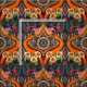 Ursprünglich in Tinte gezeichnet, Retro-Stil Blumen in Henna, grün, lila und Russ verfügbar. Fühlen Sie sich frei, um die Skala anzupassen.