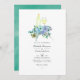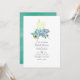 Mint und blau boho Blumenwein Verkostung Hochzeitseinladung mit Pfauenfedern entwickelt, um schnell und einfach angepasst werden. Der QR-Code auf der Rückseite führt zu Ihrer Hochzeitsstelle, wo die Menschen mehr und uAwg lernen können.