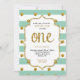 Mint and Gold Erstgeburtstag Glitzer Einladung